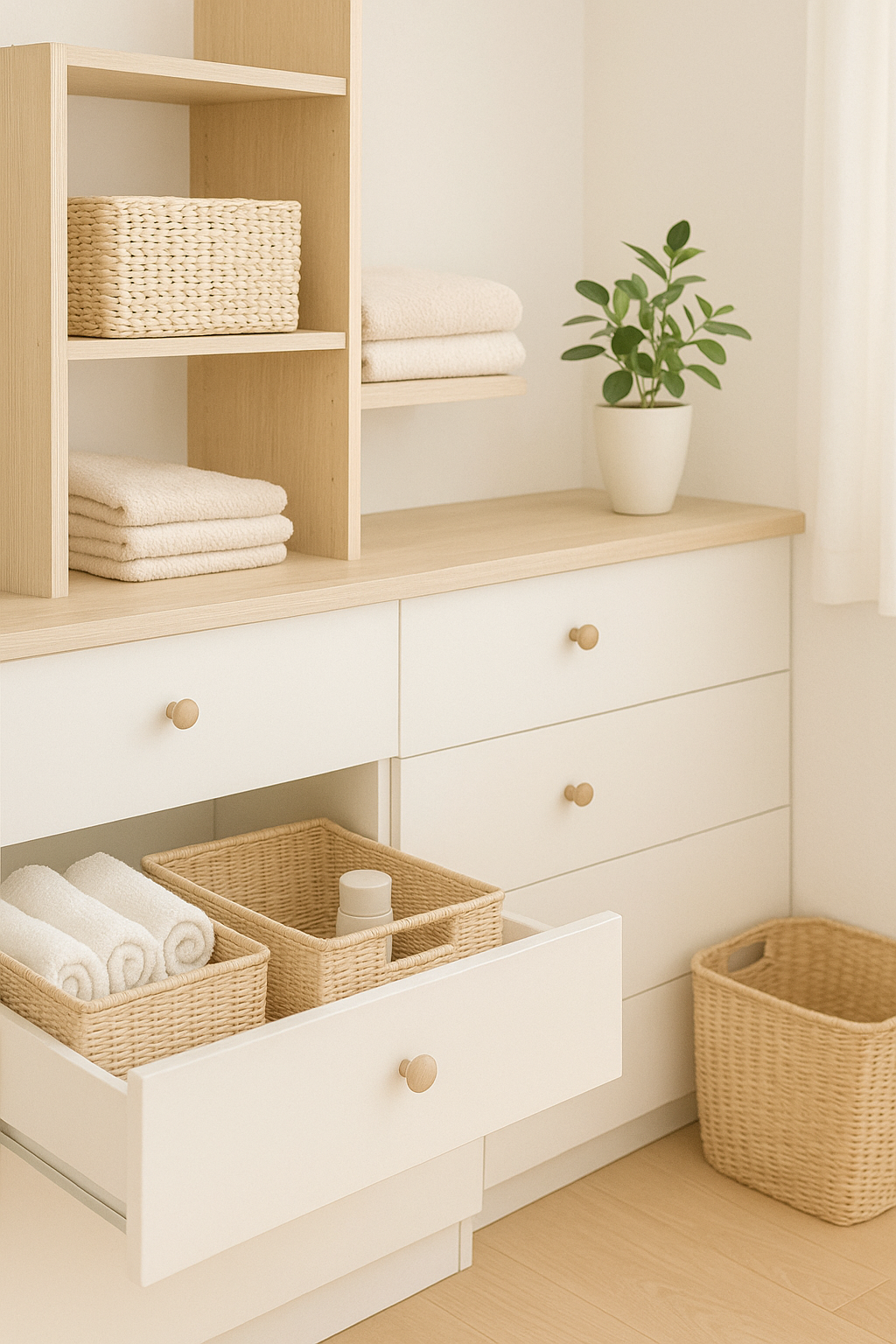 物の配置は、見た目だけでなく「戻しやすさ」がとても大切です。どれだけ素敵に収納しても、戻すのが大変だと続きません。特に、扉を開けてさらにケースを引き出さないと物が戻せない収納は、使うたびに少し手間がかかります。なるべくワンアクションで戻せるようにしておくと、家の中が自然と整いやすくなります。家族がいる場合も、誰でも簡単に戻せる仕組みになっていると片付けがスムーズ。ラベルを貼る、見えやすい位置に置くなど、小さな工夫が毎日の動きをラクにしてくれます。
